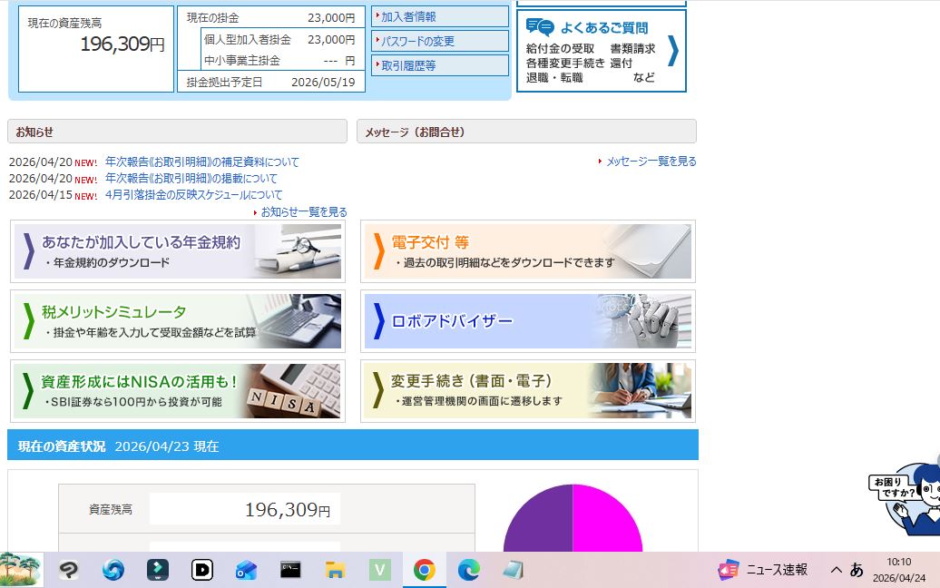 ideco→初期投資金額69000円→そこから一切追加入金なし放置