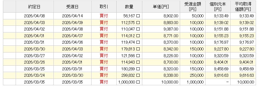 相場が下がっていた時に毎日のように買い増しをしまくったおかげで