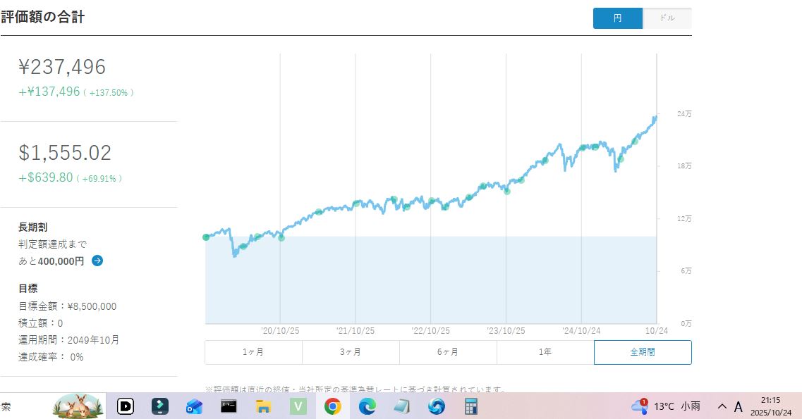 その楽天証券の評価額は現時点ではこんな感じになっています