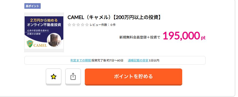 ハピタスを通して初めてキャメルに投資をした人限定で