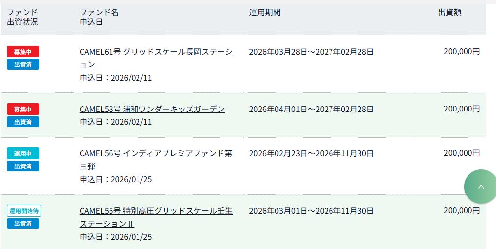 キャメルに4つ、20万ずつ、計80万を追加投資をいたしました