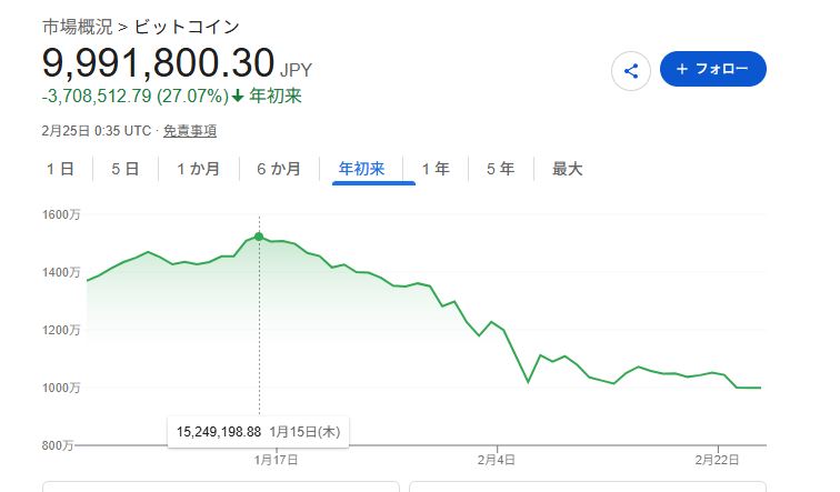 仮想通貨界隈であり、ビットコインは年初大体1400万~1500万あたりを推移していたにも関わらず