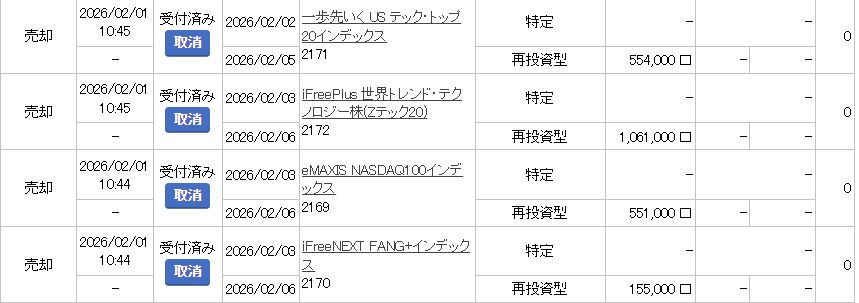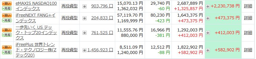 とりあえずはこの特定口座で運用している4つの投資信託に関しては